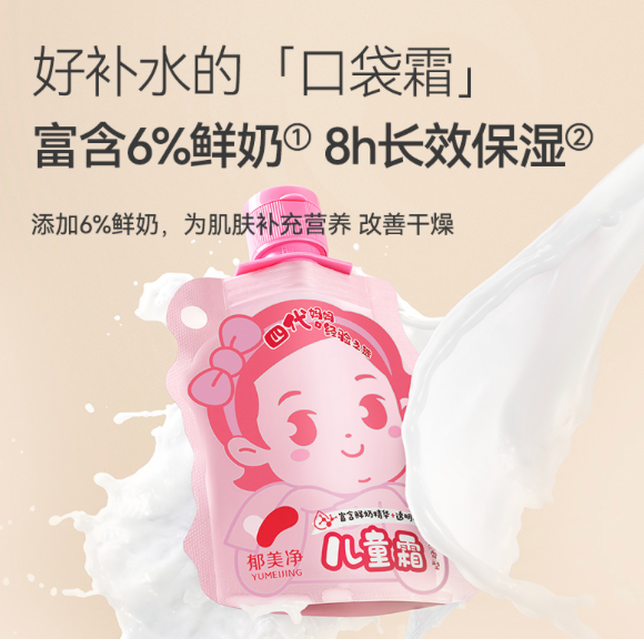 考虑到当代家庭的出行及使用习惯,郁美净新一代儿童霜采用小巧袋装计,50克的小规格便于携带、更易保存,相较于经典面霜的袋装设计,存放更方便,可轻松放入口袋、背包,享受“出门随身带,开盖即补水”的护肤体验。