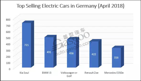 在最畅销车型中,起亚Soul电动车以721辆的销量意外成为德国4月份最畅销电动车车型,随后是宝马i3(491辆)。对于起亚Soul来说,与第二名之间的差距是比较可观的,而且4月份销量增幅是起亚在过去两年中最大的增幅。
